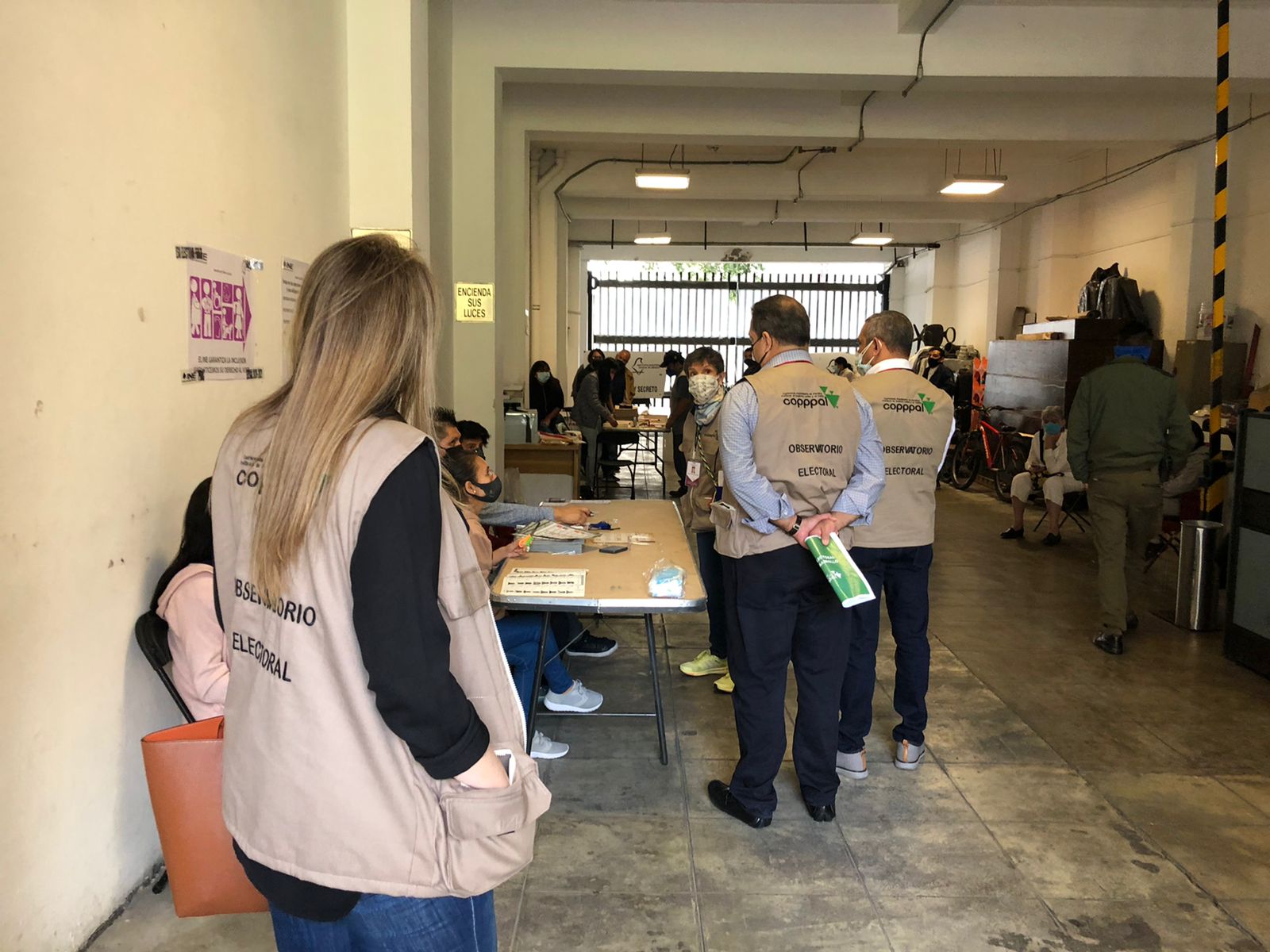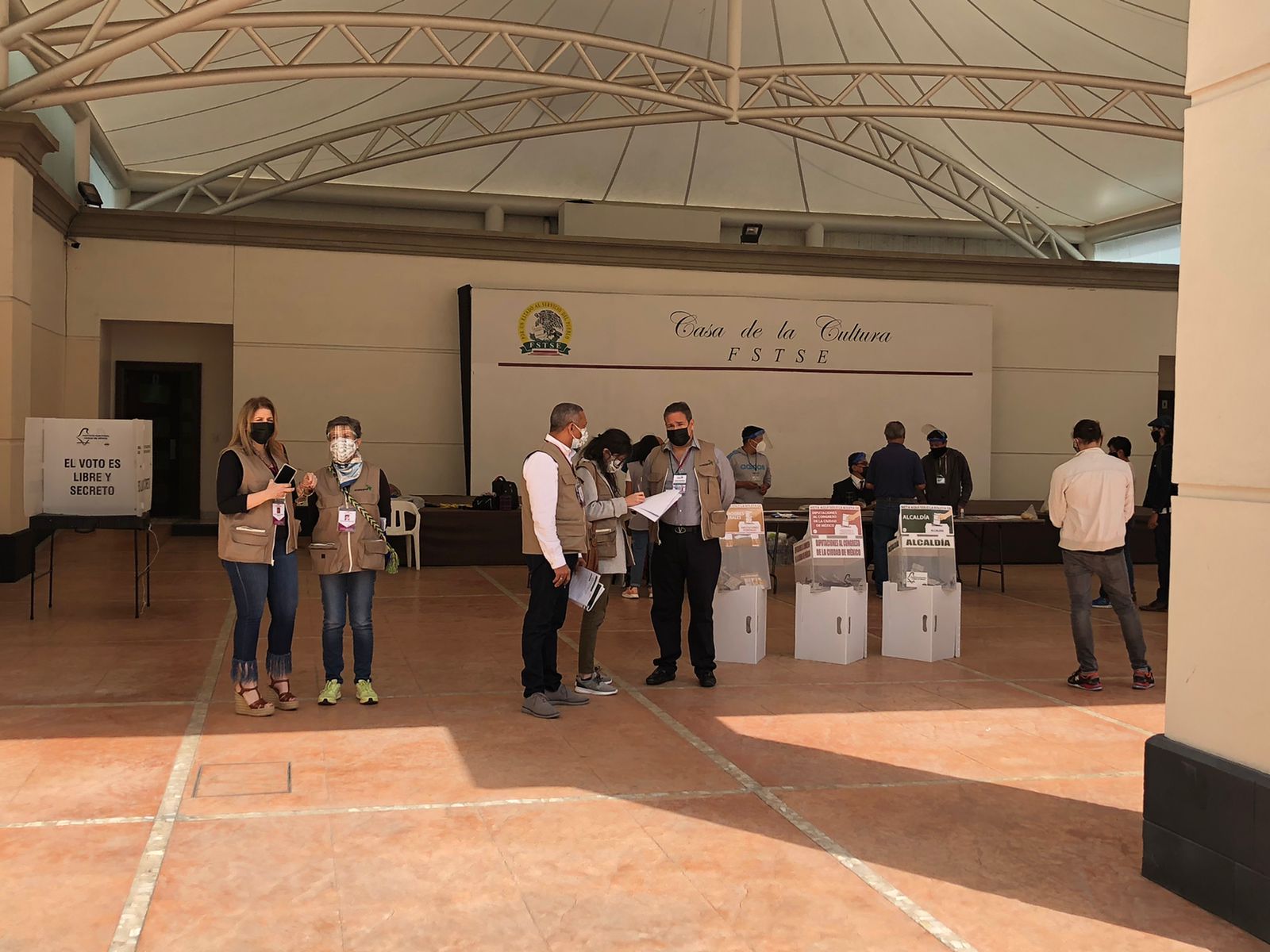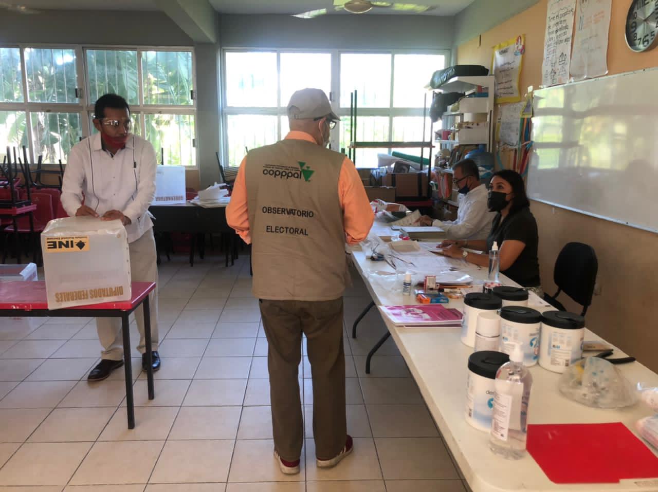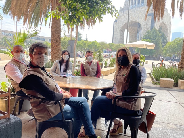 Los equipos de la Observación COPPPAL que nos quedamos en CDMX y en el Estado de México nos reunimos a las 6:30am para distribuirnos y llegar a las casillas de votación a tiempo para ver la conformación y organización de las mesas y su apertura. Las calles tranquilas, las taquerías, panaderías y cafés abiertos, poco despliegue de seguridad. Para muchos fue una sorpresa que una gran cantidad de locales de votación se ubicaran en casas residenciales, zaguanes de edificios de departamentos o patios de entrada de algunos edificios de corporaciones públicas o privadas, donde caben apenas dos o máximo, 3 mesas. Nuestro pequeño equipo hizo su primera parada muy cerca del Zócalo, en un antiguo edificio del Arzobispado, donde se agrupaban muchos equipos de radio y televisión y un contingente de policías (lo que a ninguno de nosotros llamó la atención), y donde pudimos seguir cómo se fueron organizando en un patio cercado la apertura del ¨paquete¨ electoral, los útiles y los artículos de protección personal por parte de los 2 equipos de la mesa ¨básica¨ y la ¨contigua¨ (mismo número pero una, extensión de la otra) alojadas en este recinto, así como el montaje de los pequeños cubículos de votación de plástico y sin cortinaje por la pandemia, lo que en algunos casos pudo haber comprometido el secreto del voto. Aparte de los observadores COPPPAL, había también 2 observadores de partidos políticos y uno del INE.